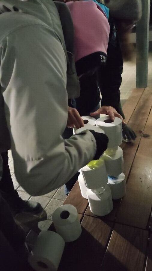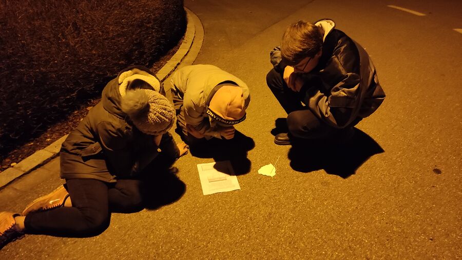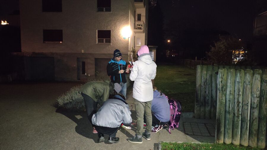 Während die einen mit vorgegebenen Wörtern und Gegenständen zB. einem WC-Bäseli einen Sketch vorbereiteten, machte sich die erste Gruppe auf den Weg. Es galt, die auf einer Karte eingezeichneten Punkte abzulaufen und der zweiten Gruppe den Weg zu markieren. Natürlich extra mit vielen falschen Fährten, wobei die Kreativität je länger es ging, nachliess.