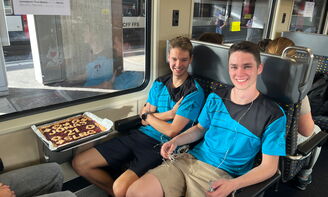 Die Reise begann in Weinfelden – mit gespannter Vorfreude, neugierigen Blicken und einer grossen Frage im Raum: Wohin geht es? Nur die Organisatorinnen kannten das Ziel. Da der Znacht etwas auf sich warten lassen würde, und weil Jonas Geburtstag feierte, wurde die ganze Gruppe zur Feier des Tages mit Kuchen verwöhnt – ein süsser Start in ein grosses Abenteuer.